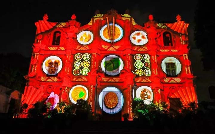 而今年恰逢澳門(mén)回歸20周年,光影節(jié)的光雕表演以“慶祝澳門(mén)特別行政區(qū)成立20周年”為主題。本次光影節(jié)制作團(tuán)隊(duì)來(lái)自西班牙、深圳及澳門(mén)本地團(tuán)隊(duì)共同為具有標(biāo)志性建筑的大三巴牌坊披上炫麗的彩衣。