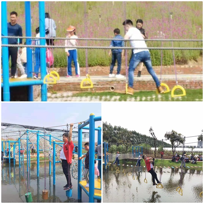 接下來挑戰(zhàn)的是水上樂園(大家猜猜紅衣服的小哥哥會落水嗎?)