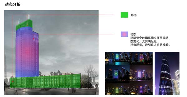 為打造一個動靜皆宜的威海國亭大廈,設(shè)計師把亮化方案分為幾個部份,玻璃幕墻立面呈現(xiàn)動態(tài)變化,尤其滿足遠(yuǎn)視角觀賞,吸引路人駐足觀看的效果。