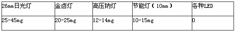 以前,我們會(huì)談汞色變,比較典型的案例就是日本的水俁病事件了,而后日本在汞處理方面力度很大。我們比較熟悉的含汞產(chǎn)品估計(jì)就是電池了,不過現(xiàn)在也改良成了無汞電池。但是我們的日光燈和一些電子產(chǎn)品,都有汞存在,而我們卻有很多人不懂處理,包括環(huán)保部門對(duì)這方面也不怎么重視,一般都是隨意填埋,導(dǎo)致汞滲透到地下水和土壤當(dāng)中,污染嚴(yán)重。LED的出現(xiàn)和流行是有一定的原因的,不單單是節(jié)能,還有的一個(gè)重要點(diǎn)是無汞環(huán)保。這是日本大力推行LED燈具的重要原因。以下是各燈具含汞量:
