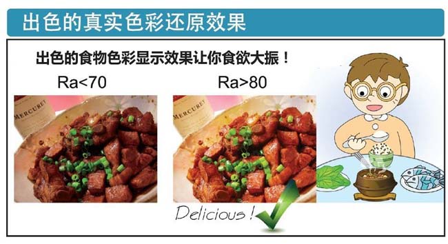 如果說(shuō)日光的顯色指數(shù)是100,按現(xiàn)下國(guó)際照明委員會(huì)提出的標(biāo)準(zhǔn):照明燈具能達(dá)到80以上則算是顯色性較好的燈具,而視光源的種類(lèi)不同,白熾燈和節(jié)能燈的顯色指數(shù)普遍高于LED燈具的顯色指數(shù),LED光源達(dá)到70~90內(nèi)也算不錯(cuò)的效果。當(dāng)然,用于室內(nèi)照明的燈具需要盡可能的達(dá)到80以上。