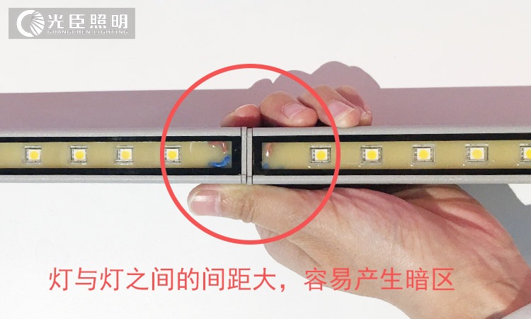 但有一點(diǎn)大家有要記住,LED線條燈并不是做到無縫對(duì)接就一定能達(dá)到無暗區(qū)效果,繼續(xù)看圖說話,怎么樣做到的無暗區(qū)效果,其實(shí)很簡(jiǎn)單,就是燈與燈之間的距離縮短至點(diǎn)與點(diǎn)的距離,整體連貫就沒有黑色暗區(qū)。